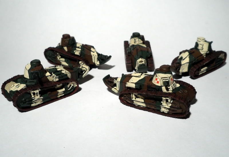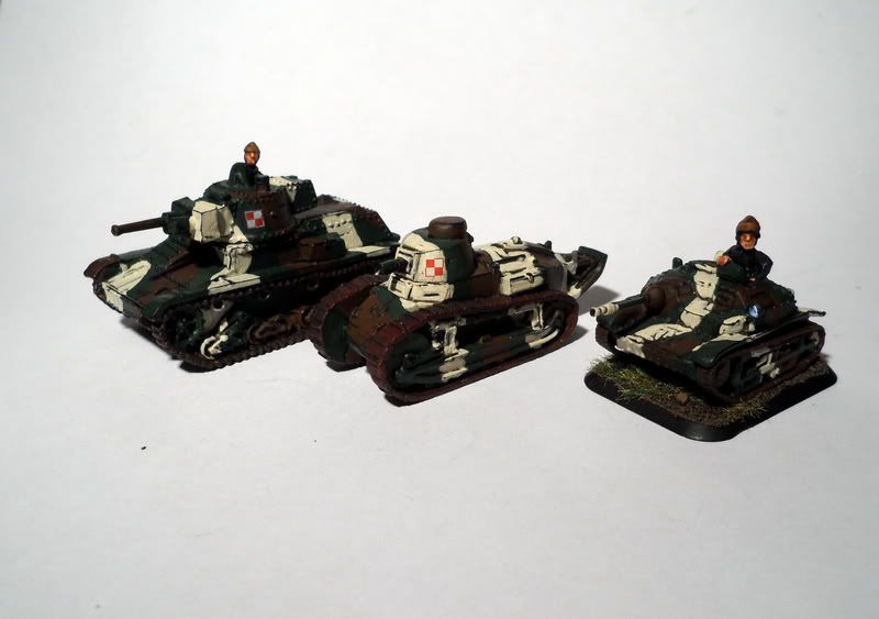 The idea behind the purchase of these tanks was that if me and Widgren (and perhaps others at the club) will play a September 1939 scenario - then I would like to adapt my army list around historical battles and depending on the type of scenario. If there will be a counter attack then I'll use 7TP tanks. In a defensive scenario the FT-17's. Ambush scenarios - TKS tankettes and so on.