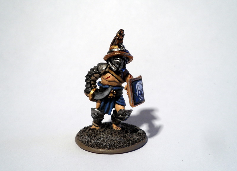 As a side note I must say I rather enjoy this little project for one particular reason, it allows experimenting with skin color. Since the gladiators are supposed to hail from all corners of the Roman Empire I figured I might as well try to paint their skin somewhat more diverse than the usual tone. As far as I remember I had not painted black skin on any miniature before I painted my Nubian and African province gladiators.